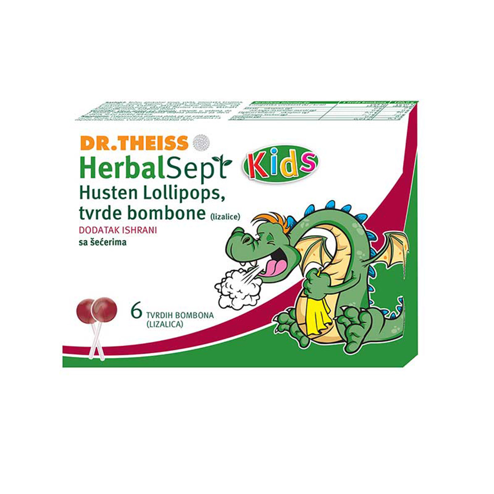 Herbal Sept Lizalice protiv kašlja ublazačaju kašalj i doprinose zdravlju respiratornog trakta. HerbalSept Kids lizalice protiv kašlja poboljšačaju vlaznost grla i olakšačaju iskašljavanje.