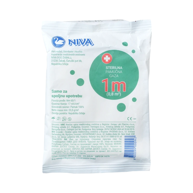 Dodaj u korpuNIVA GAZA sterilna 1m x 80cm 100% pamuk