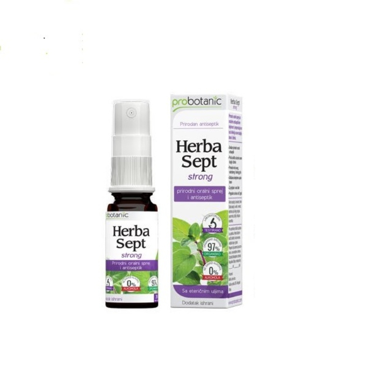 Herba Sept strong je prirodni oralni sprej sa antiseptičnim dejstvom koji se preporučuje kod infekcija usne duplje, desni i ždrela.